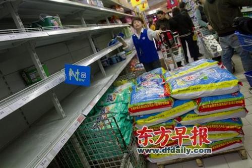 (來源:東方早報) 生產(chǎn)商將上調(diào)日化用品價格的消息持續(xù)發(fā)酵。周五周六,一些上海市民剛剛從盲目搶購食鹽的“糊涂”中清醒,又加入到搶購日化產(chǎn)品的隊伍中,導(dǎo)致前天和昨天滬上部分超市、賣場的洗衣粉、肥皂、沐浴露等多款日化產(chǎn)品供不應(yīng)求。