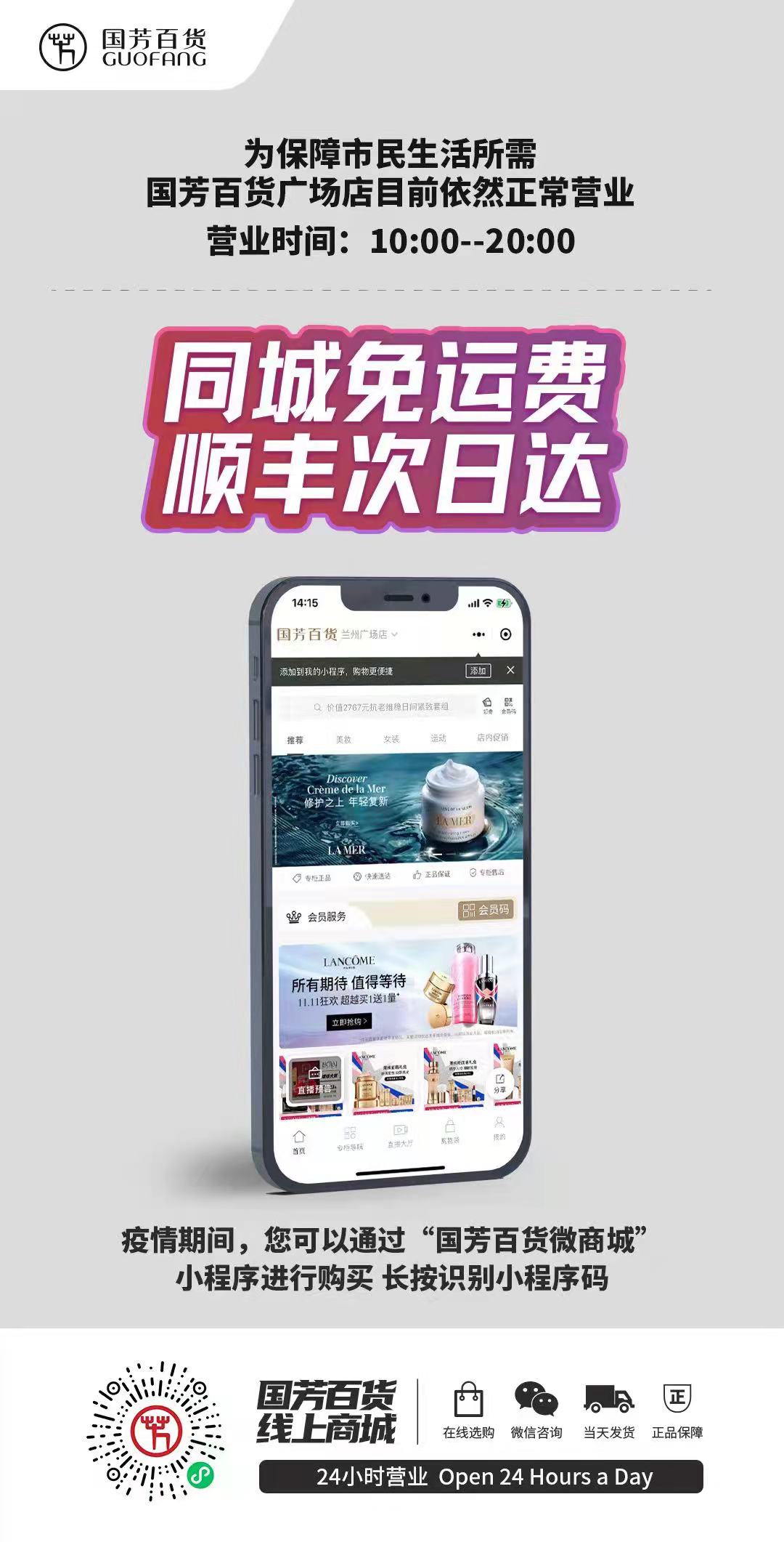 集團公司旗下國芳百貨積極響應(yīng)政府部門號召,采取全員居家辦公形式,呼吁顧客免外出、免接觸,通過國芳線上商城進行商品購買,同時增加直播平臺推廣量,保證安全的基礎(chǔ)上滿足顧客居家購物需求。國芳百貨全體員工努力在特殊的疫情環(huán)境下,為顧客解燃眉之急,想顧客之所想,急顧客之所急!