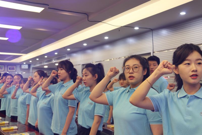 迎著初夏的朝陽,班旗授旗儀式隆重舉行,2021屆管培生班長杜凱源、副班長馬喜梅代表2021屆全體管培生進行授旗儀式,2022屆管培生代表劉書豪、羅倩接過莊嚴的旗幟并進行宣誓。這面活力四射,寓意深遠的旗幟,凝聚了往屆所有管理培訓生的智慧和心血,象征一個集體精神、主義、信仰,也是團體榮譽的標志。