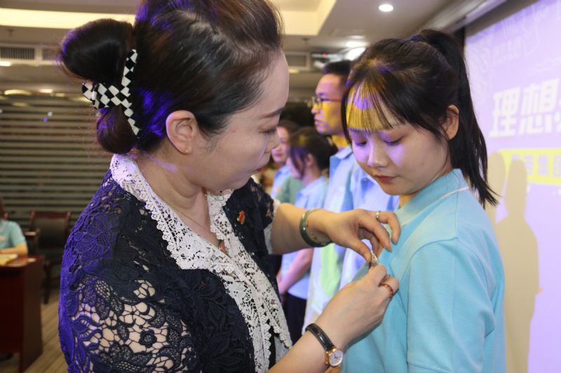 在入職儀式進入尾聲之際,進行授牌及贈書儀式,由國芳集團各位領導為新一屆管理培訓生佩戴工卡并合影留念,從此刻起,數十名管理培訓生便正式成為了國芳集團中的一員。